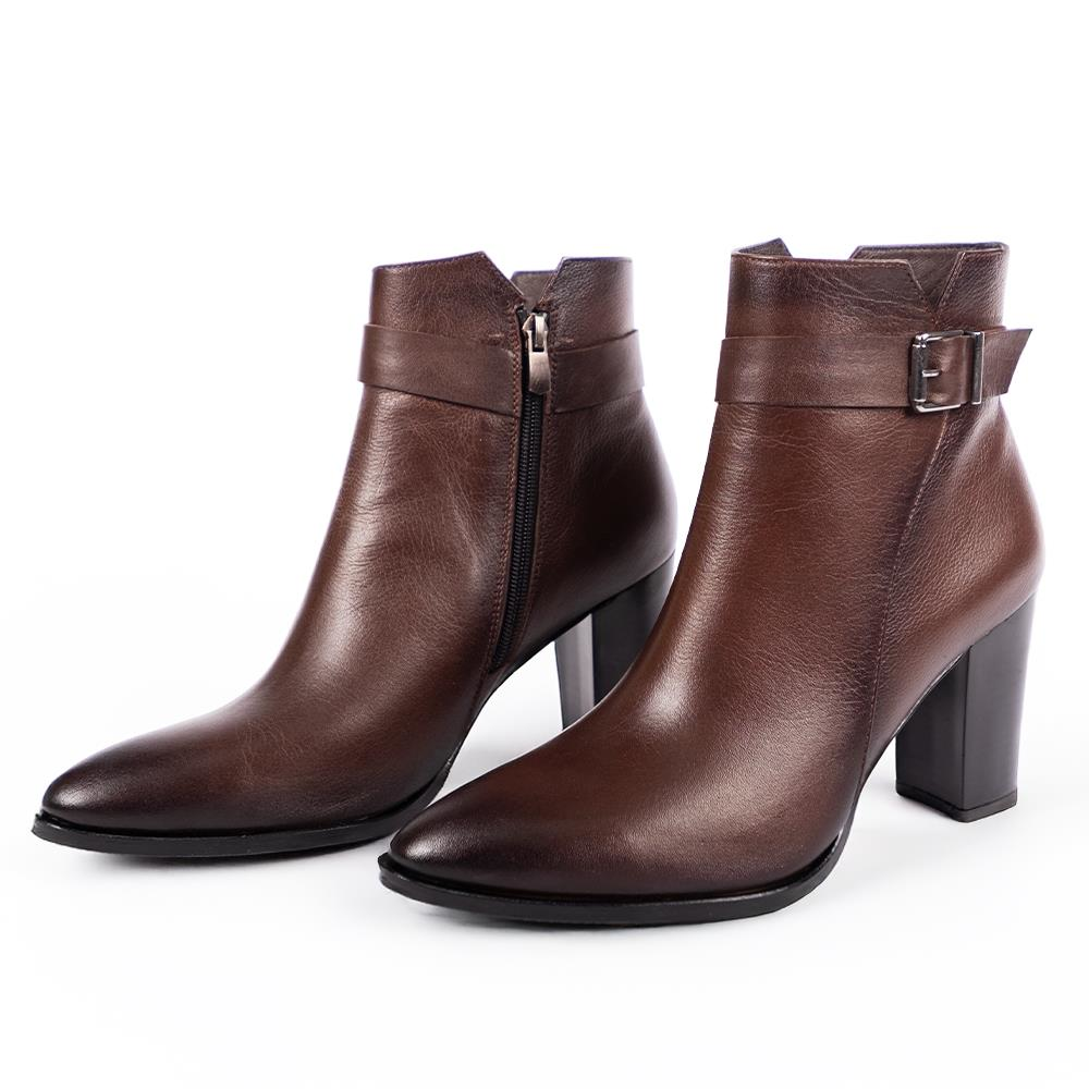 43021 Kadın Deri Bot (9cm) Kahverengi - 39